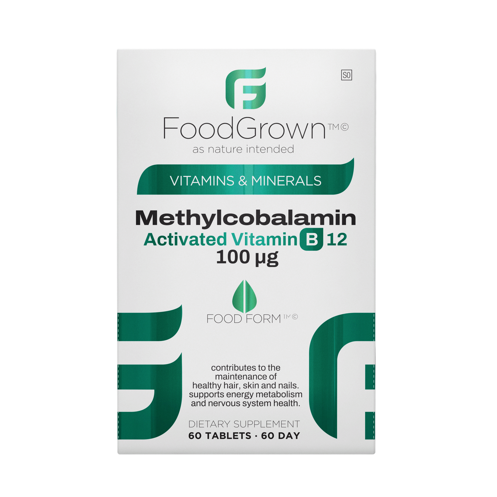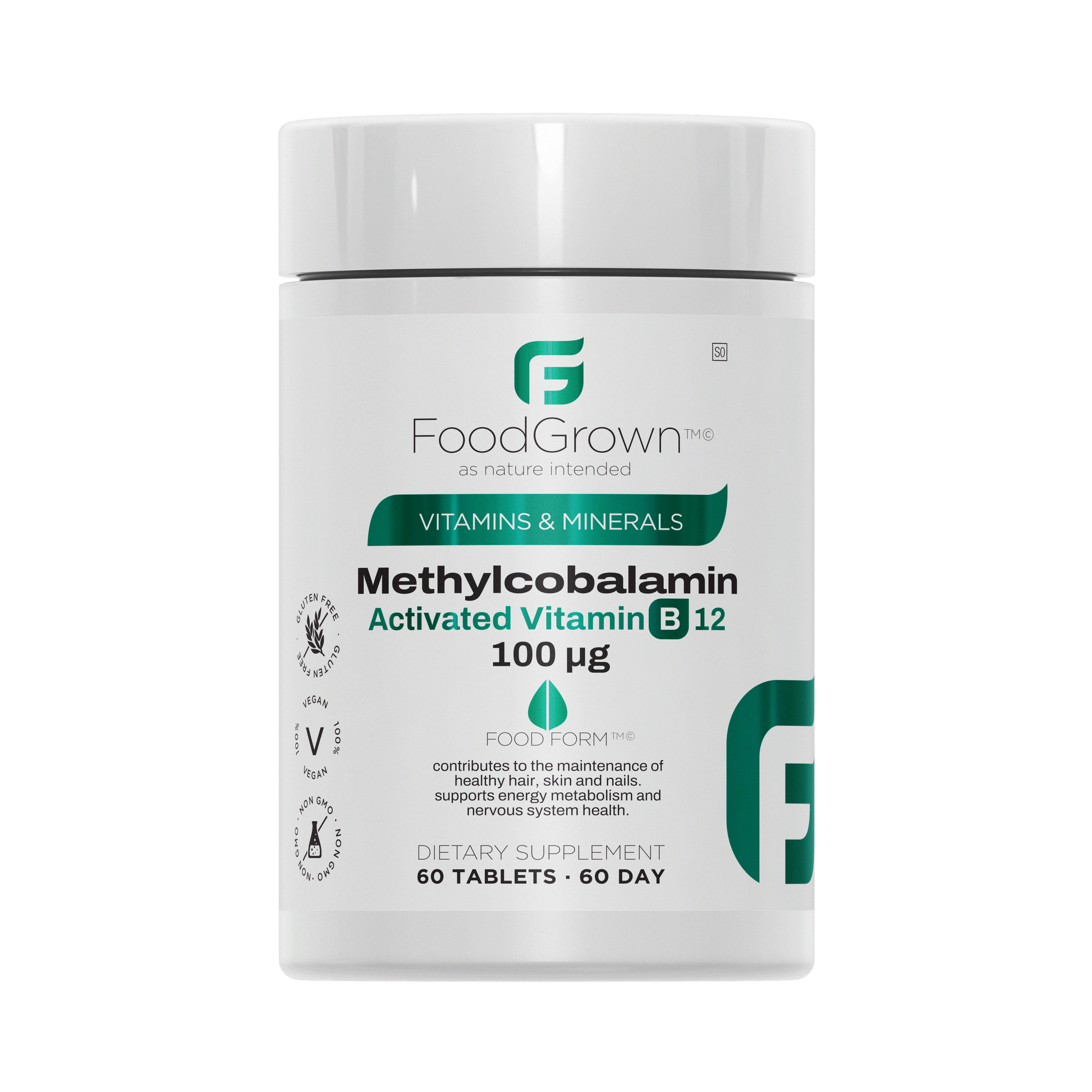 FoodGrown™© Methylcobalamin provides the natural, active form of Vitamin B12, known for its superior absorption and rapid utilisation in the body compared to synthetic forms.