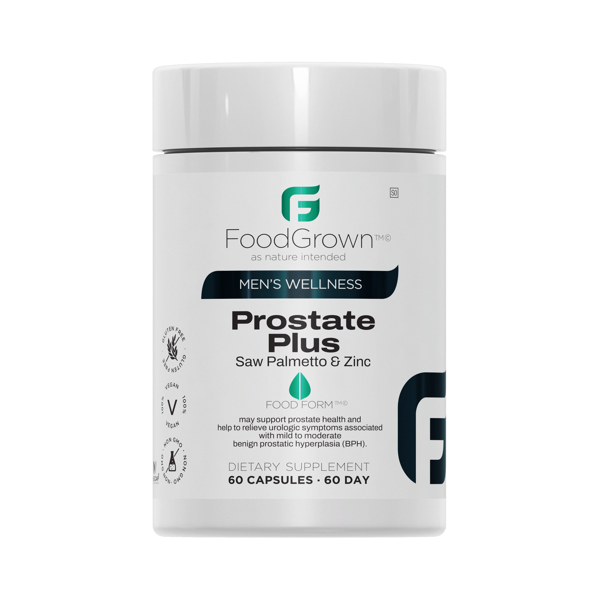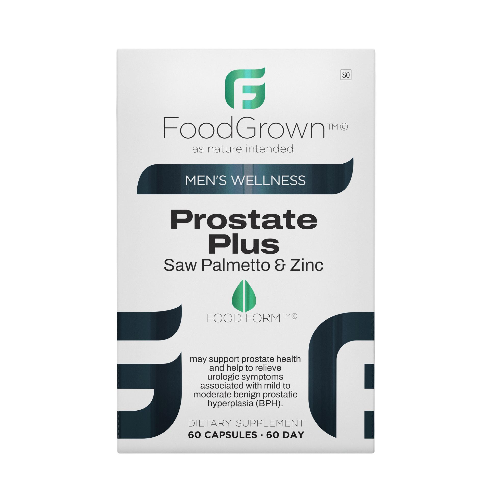 FoodGrown™© Prostate Plus combines a concentrated extract of Saw Palmetto with naturally sourced Zinc from yeast to support male urinary and reproductive health.